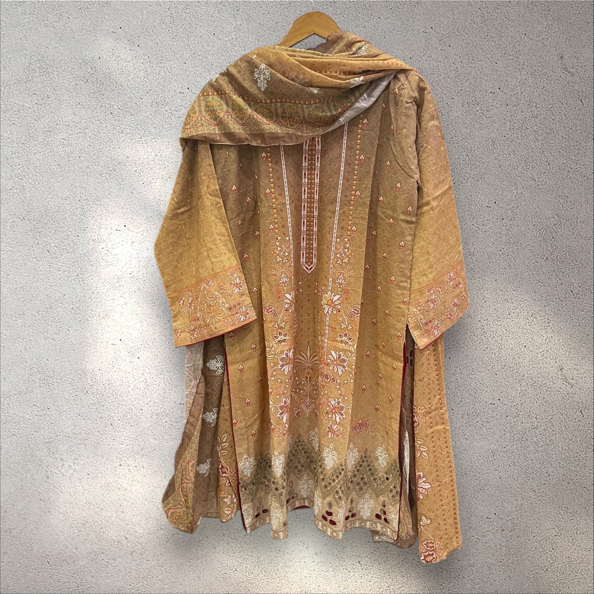 This yellow dress radiates softness with a naturally uplifting charm. Perfect for days when you want to feel light, graceful, and luminous.. This is a Three Piece Dress Including Kameez, Dupatta, Trouser.