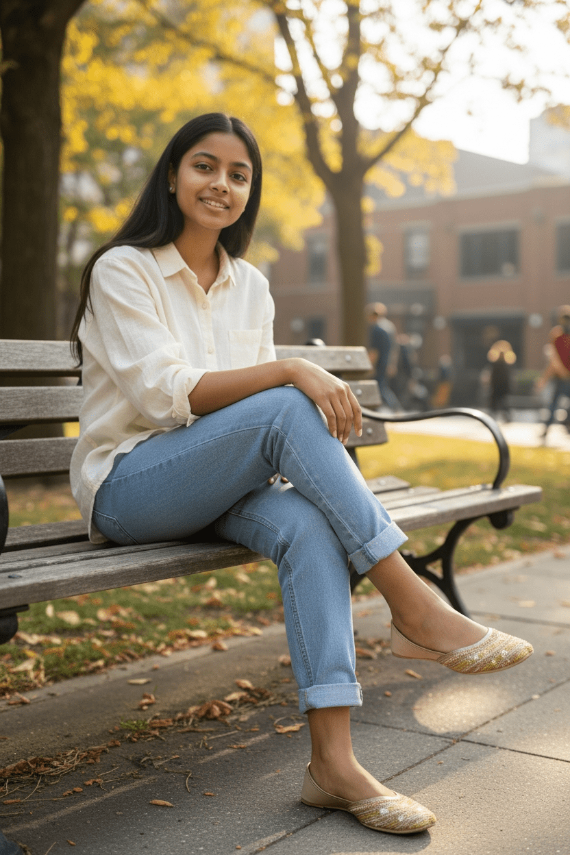 Handmade embroidered khussa featuring a durable anti-slip outer sole for secure grip and a soft cushioned inner sole for all-day comfort.