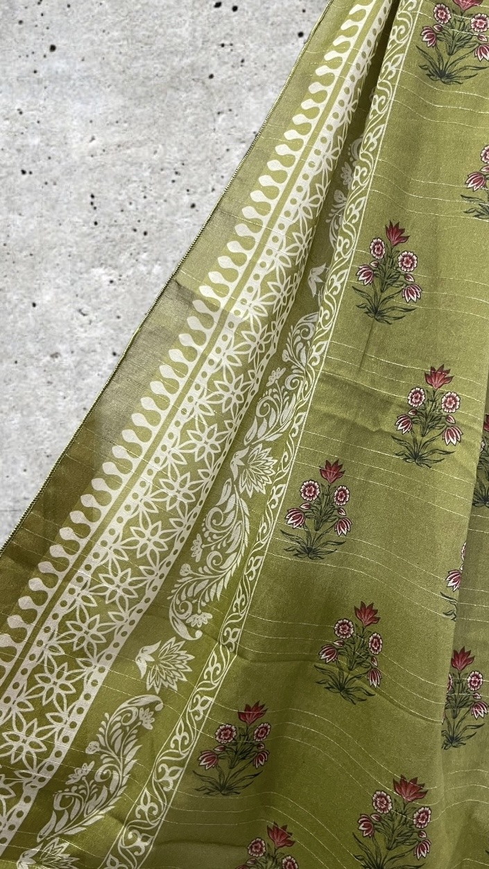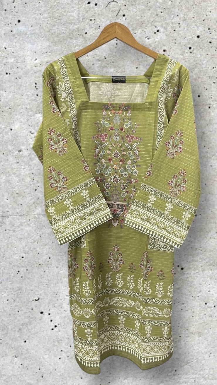 A unique blend of mustard and green creates a rich, earthy tone that stands out effortlessly. Its elegant flow and refined design make it perfect for chic daytime events or evening outings. This is a Three Piece Dress Including Kameez, Dupatta, Trouser.