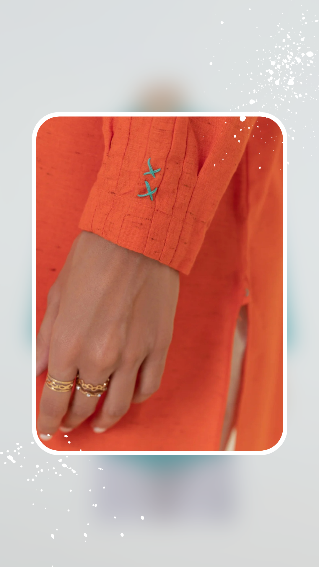 Effortlessly clean, timelessly grounded. This Sunset Rust Kurta blends structure with simplicity for a calm, confident look.