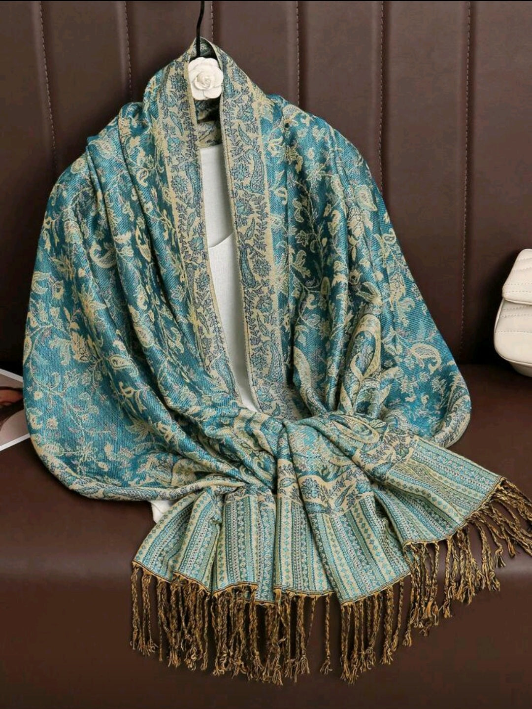 Soft, cozy and stylish, this blue shawl is perfect for daily wear, adding a graceful and trendy touch to any outfit.