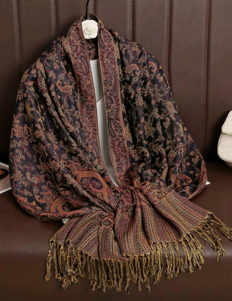 Soft, warm and stylish, this maroon shawl adds a deep, luxurious and graceful touch to both casual and semi-formal outfits.