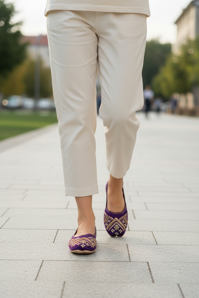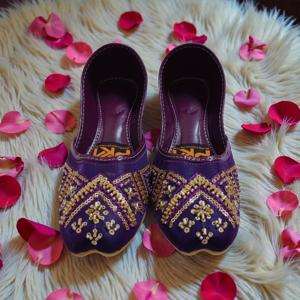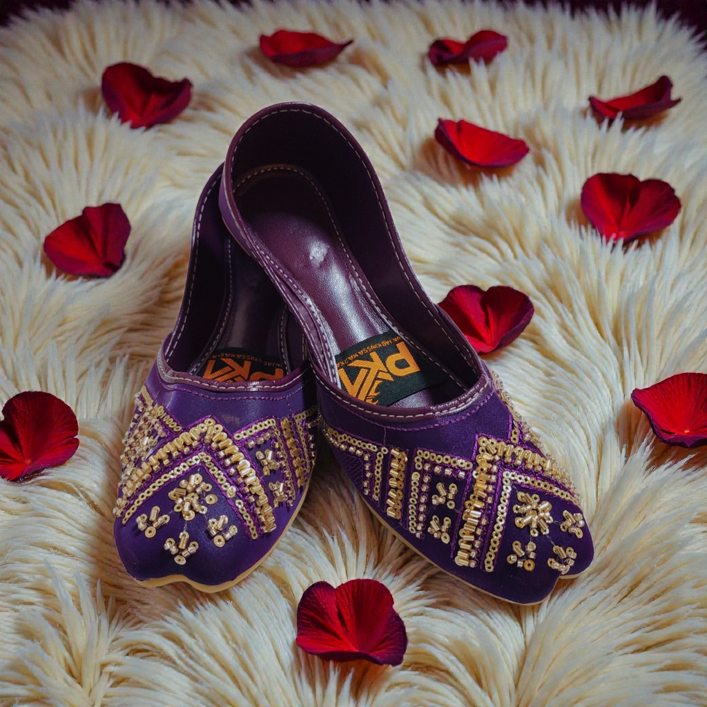 Fabric with Hand Embroidery Lining, Cushioning- Double padded sole, and back for some extra comfort to avoid blisters ANTI SLIP SOLE for all day comfort.